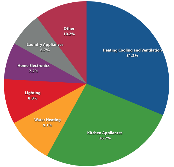 Click now to view EIA - Electricity by end useElectricity usage in American homes by category of appliance.